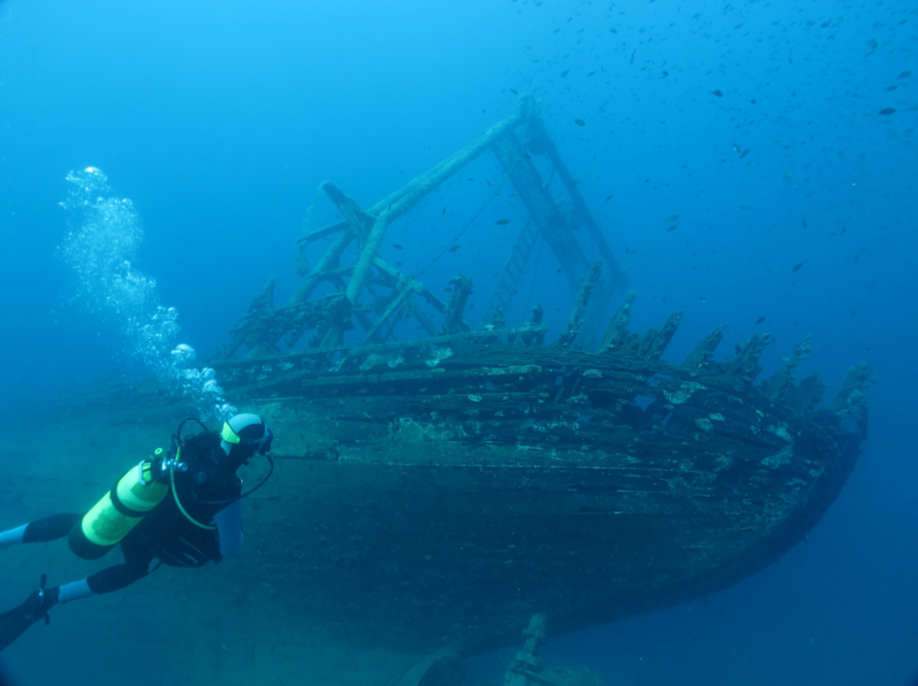 En direction vers l’est de l’iles on y trouve la très belle épave de l’Anvers, accessible dès le niveau 1, l’épave du Voilier, échouée de l’autre côté vers le sud du Sound, qui gît sur un fond de sable par 38 mètres de fond, non loin d’un joli tombant.